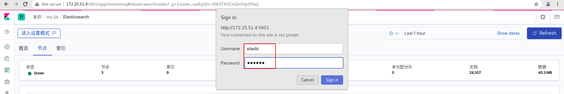 kibana端设置 访问kibana已经需要用户名密码了  刷新需要登陆,登录进去会发现kibana状态为红即没有正常运行  server4,所以设置kibana,修改主配置文件。添加访问es集群的用户和密码,然后重启kibana