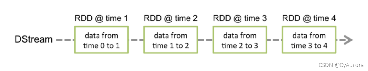 ????????DStream的内部,其实?系列持续不断产?的RDD。RDD是Spark Core的核?抽象,即,分布式式弹性数据集。DStream中的每个RDD都包含了?个时间段内的数据。