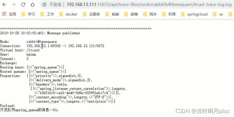 消息的过期时间;只需要在发送消息(可以发送到任何队列,不管该队列是否属于某个交换机)的时候设置过期时间即可。在测试类中编写如下方法发送消息并设置过期时间到队列: