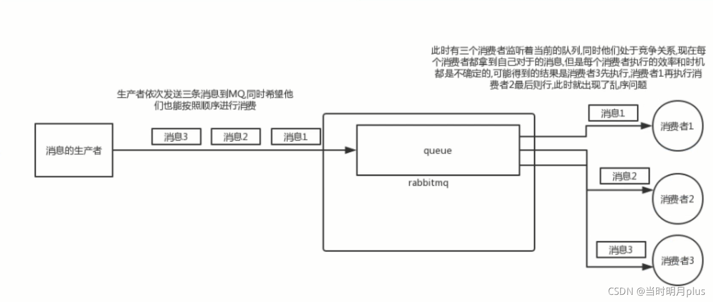 当RabbitMQ采用work Queue模式,此时只会有一个Queue但是会有多个Consumer,同时多个Consumer直接是竞争关系,此时就会出现MQ消息乱序的问题。