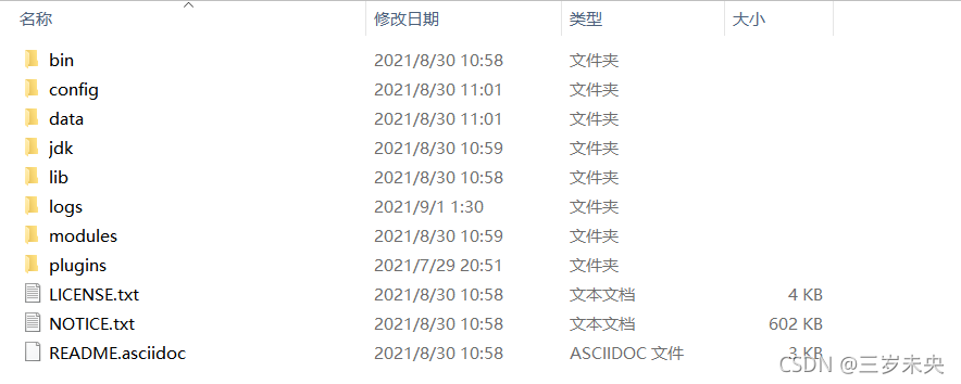 ②.下载到本地目录结构如下:双击打开 bin下的 elasticsearch.bat 开启es服务