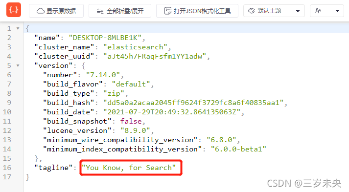 ③.浏览器访问 127.0.0.1:9200? 如下:安装成功