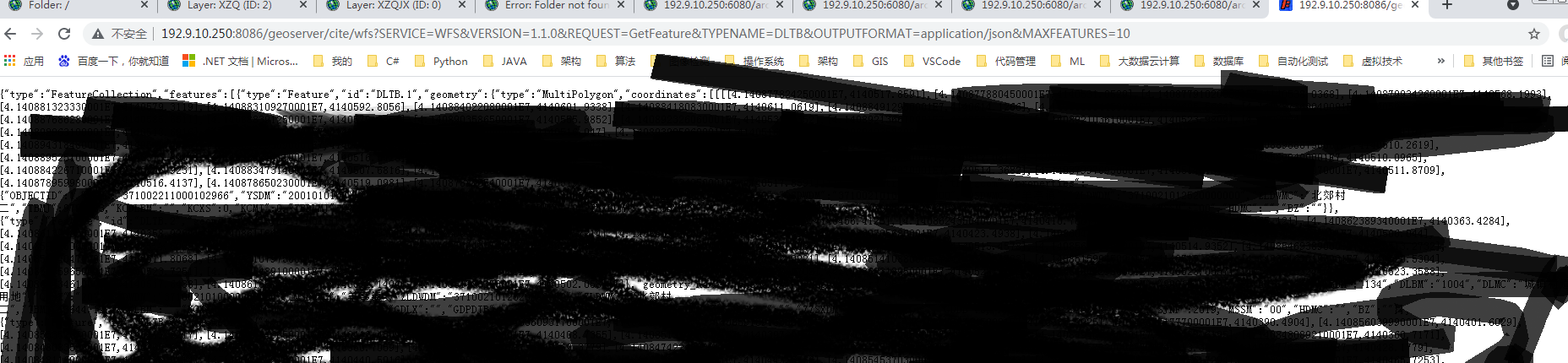 http://192.9.100.194:8086/geoserver/cite/wfs?SERVICE=WFS&VERSION=1.1.0&REQUEST=GetFeature&TYPENAME=DLTB&OUTPUTFORMAT=application/json&MAXFEATURES=10