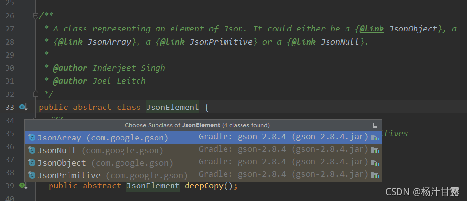 这个抽象类的子类。 JsonElement提供了一系列的方法来判断当前的