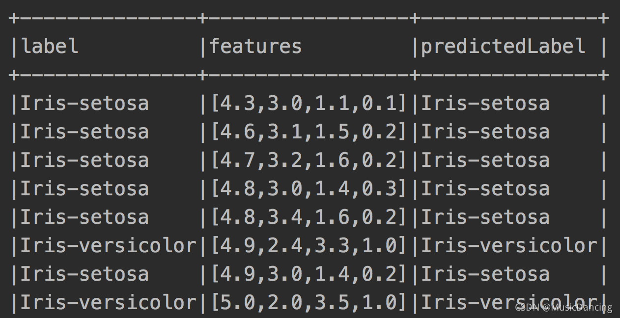 val df = spark.sql("select * from iris where label != 'Iris-setosa'")