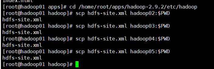 · 拷贝hadoop的hdfs-site.xml文件到hadoop02~hadoop05