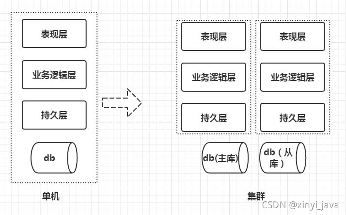在应用初期,单体应用从成本、开发时间和运维等方面都有明显的优势,但是随着业务量和用户量的增加,导致代码的可读性和可维护性很差。同时面对海量的用户,数据库也会成为瓶颈。单体架构己经不能满足复杂的业务和海量的用户系统,改变单体架构势在必行。