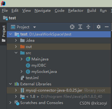 注意External?Libraries中的mysql-conn...,这个是Java连接mySQL的驱动,导入方法是File---Project?Structure---Modules---Dependancies---(+)---JARs or Direc...,选择这个文件就行。