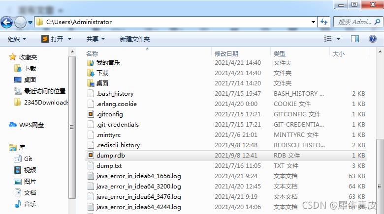 - 先找到dump.rdb文件,手动删除,我电脑是win7,目录在C:\Users\Administrator