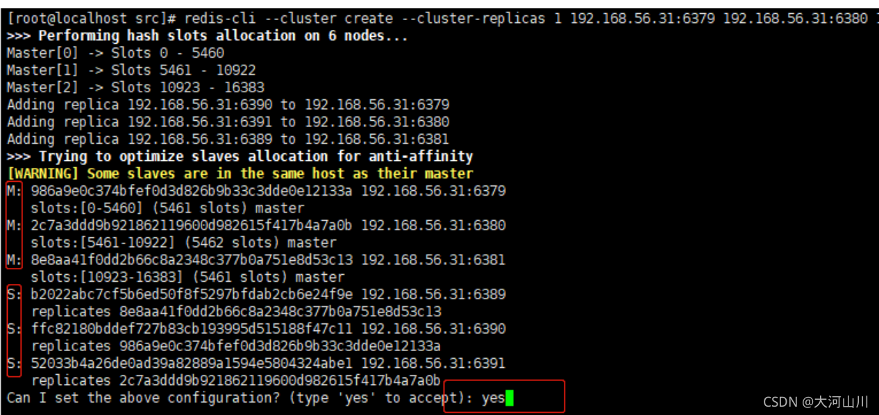 执行命令后,redis提供推荐的主从配置建议,执行同意。