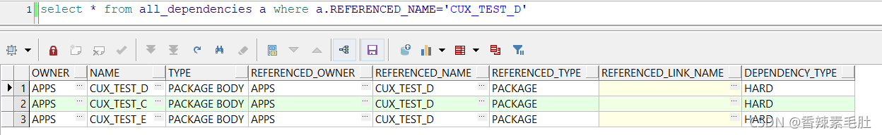 而这个依赖关系,用视图all_dependencies提现,如下: