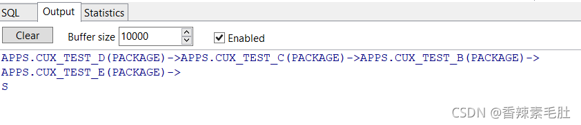 2.Package Body CUX_TEST_C 调用了Package CUX_TEST_D,但是CUX_TEST_D的调用链仍旧是 Package Body调用其它,所以我们在处理的时候,需要把Package和Package Body当成同一个东西,我这里是都当成package 处理
