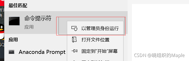 以管理员身份打开CMD