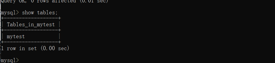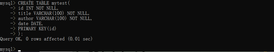 CREATE TABLE table_name (column_name column_type); - 在mytet中创建mytest数据表