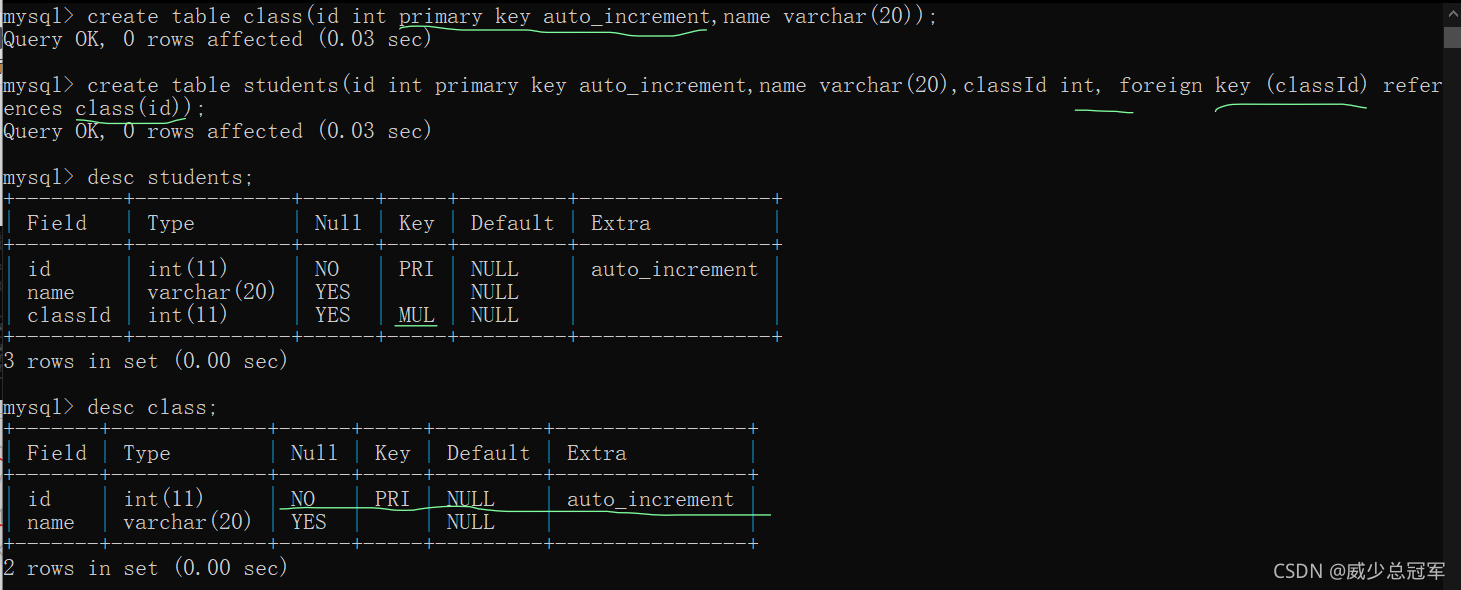 外键 两张表之间的关联关系 常见于学生表和班级表,订单表和商品表