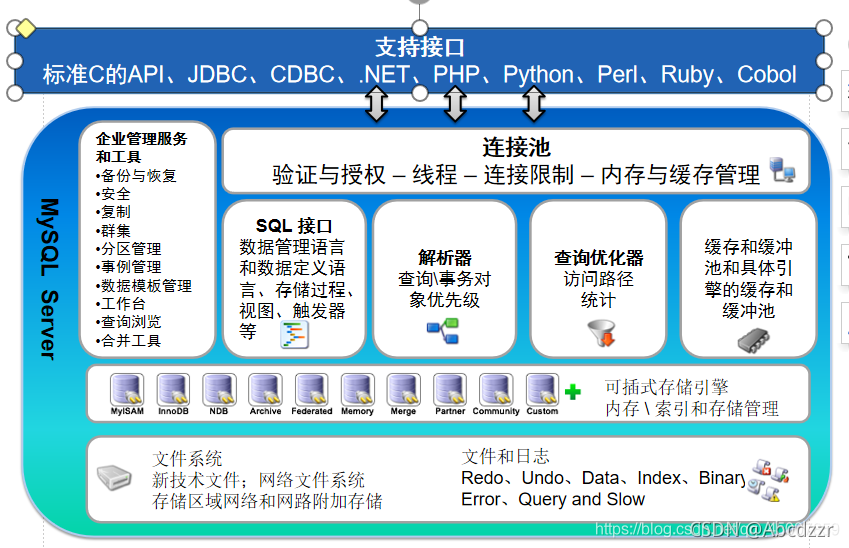 (1)验证不成功就会返回到原来 (2)验证成功(如有缓存也会回到上一级)如未找到缓存就会继续进行SQL接口,解析,查询,优化到存储(一个一个的数据库)查找相关内容返回