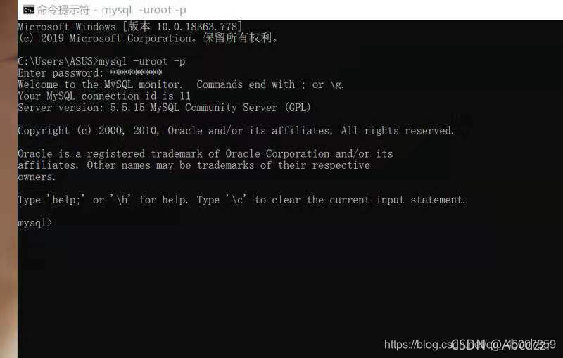 语法:mysql-h服务主机地址(可省略不写)-u用户名-p密码 eg:mysql-uroot-proot 或mysql-uroot-p