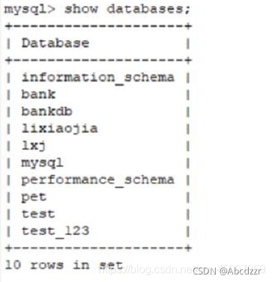 3.3查看MySQL版本信息及当前用户 ?? ??? ?select version(),user(); ?? ??? ??? ?版本 ? ?用户 3.4查看数据库列表 ?? ??? ?show databases;