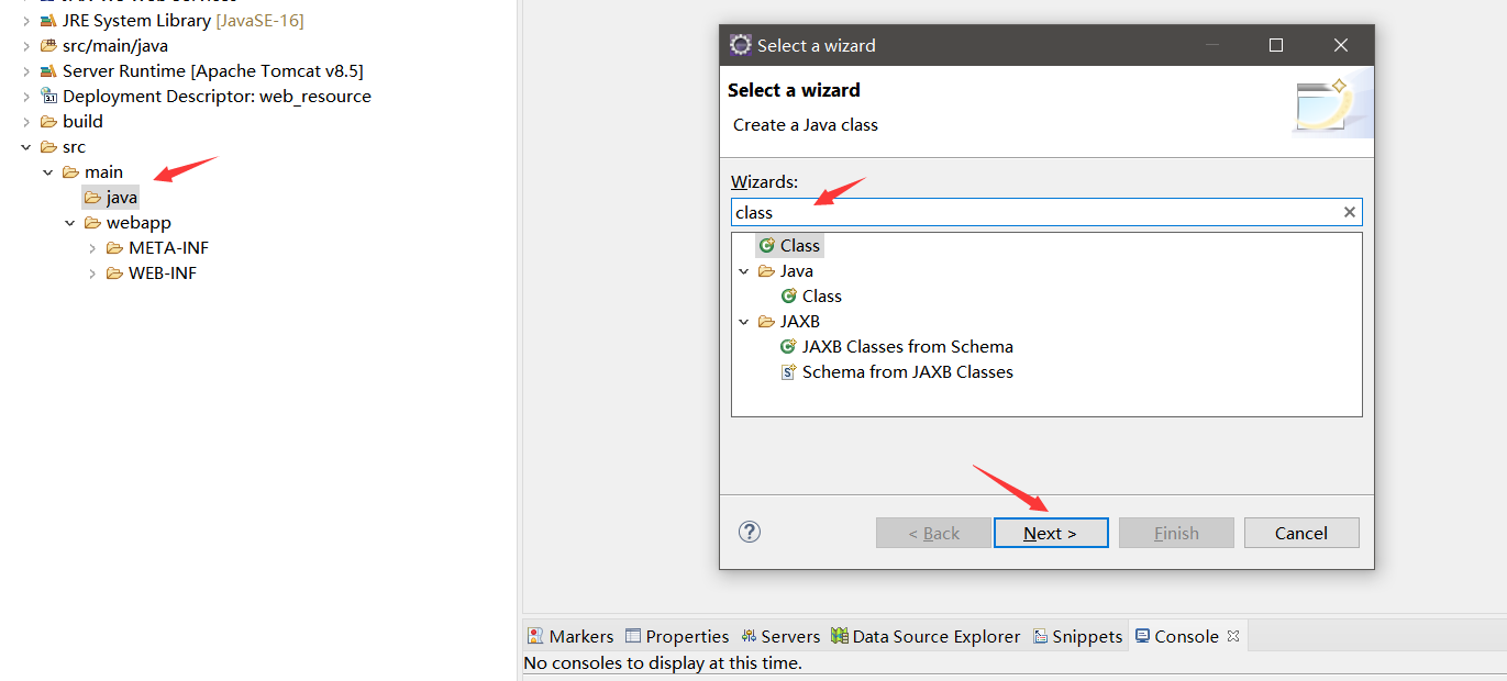 鼠标左键java文件夹按Ctrl+N输入class