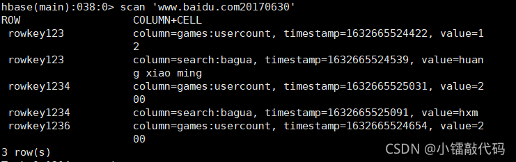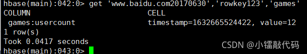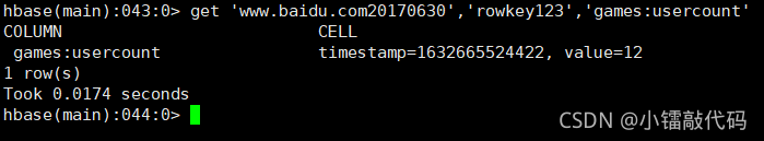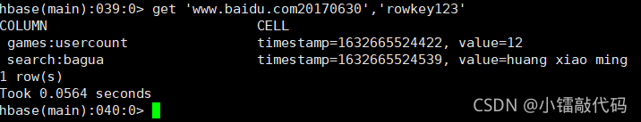 get 'www.baidu.com20170630','rowkey123','games:usercount'