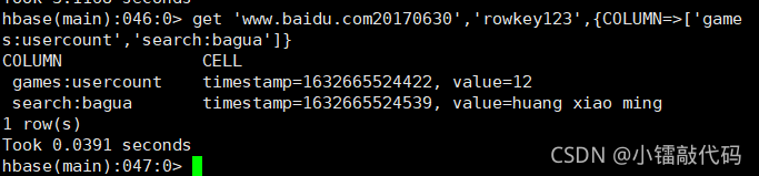 get 'www.baidu.com20170630','rowkey123',{COLUMN=>['games:usercount','search:bagua']}