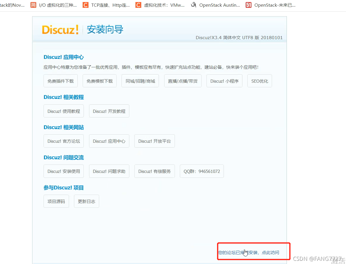 出现这个界面代表论坛搭建完成。?