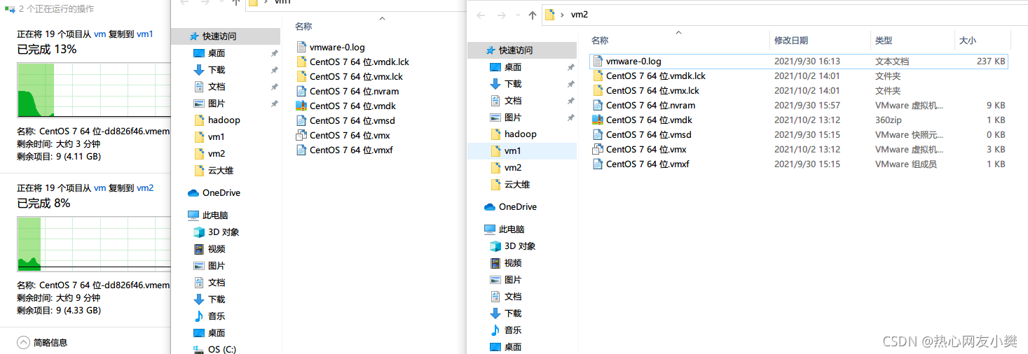 拷贝之后,将拷贝出的两份中的lck后缀的文件(是文件,不是文件夹,文件夹删了就需要你重新装了)删除,不然虚拟机会打不开