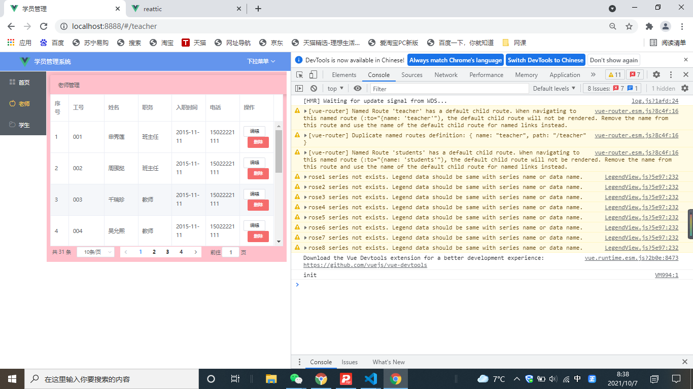2. 在 src\views\teacher\index.vue 中, 添加 JS 代码如下:?