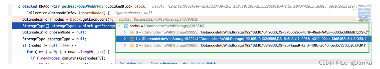 经过这个方法,我们就可以得到目标DataNode:这里和我的集群192.168.10.102对应上了!