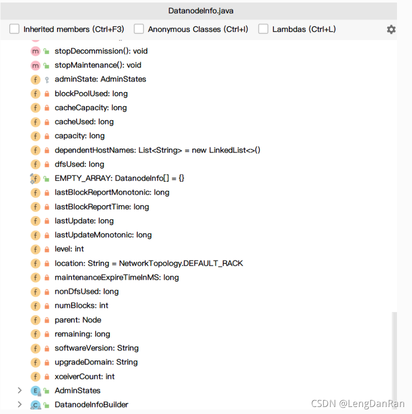 DatanodeInfo对象是对DataNode信息进行了封装,我们可以进去看看: