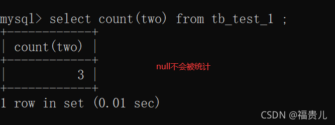 ? ? 3. count(字段)不会统计null值,count(*)可以 ?