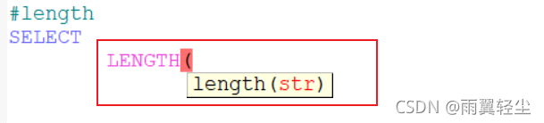 如图,我们可以知道,LENGTH函数里面放的是一个字符(str)。