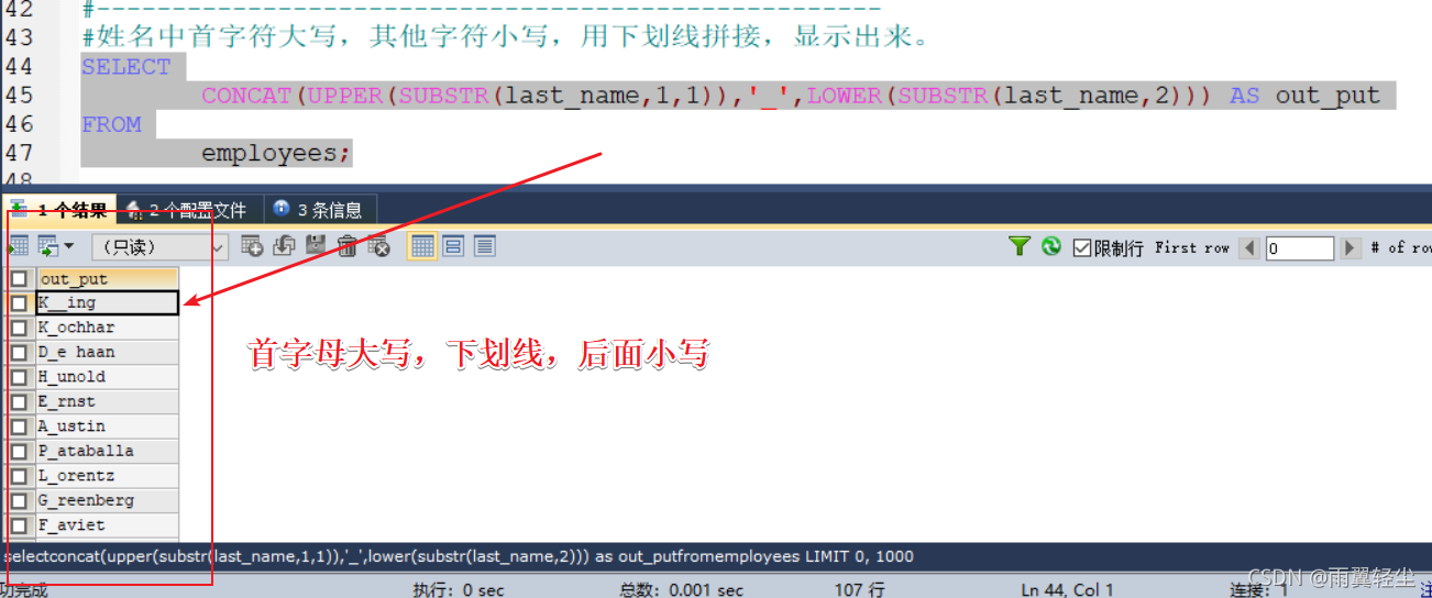 CONCAT(UPPER(last_name),LOWER(first_name)) AS 姓名