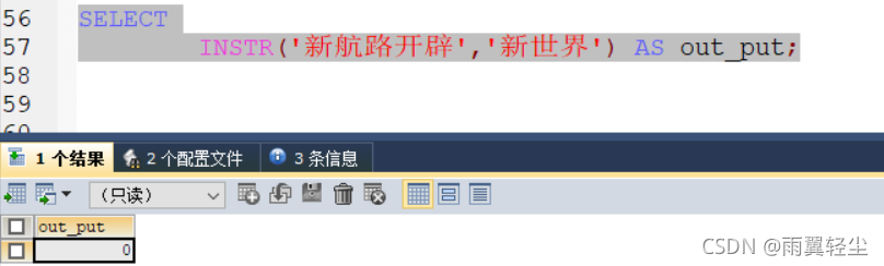 我们可以看见,若没有要求显示的子串,执行结果就是0。