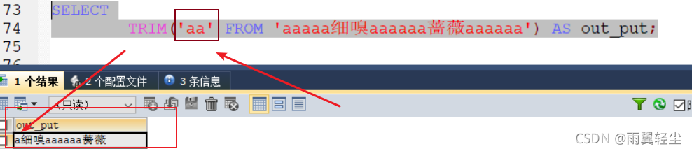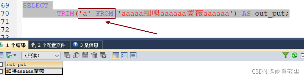 我们可以在输入的字符前面加上? 'a' from,给它规定一下,这次要去掉的是a。