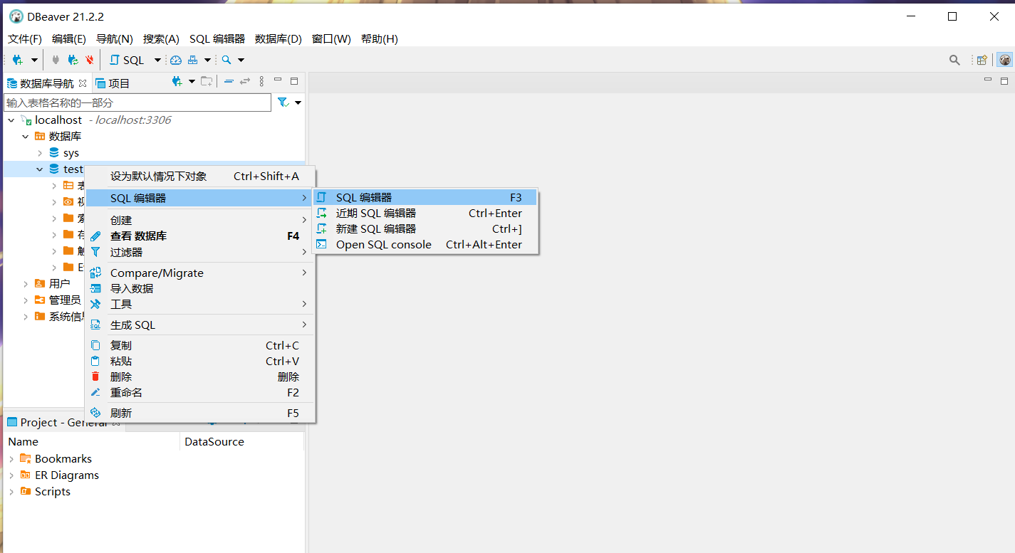 2.DBeaver安装 有许多软件编辑sql,这里我选择的是DBeaver,这里是下载地址 DBeaver 下载安装好之后打开DBeaver,连接数据库  选择MySql,下一步  输入用户名和密码,完成数据库连接 双击数据库连接,右击数据库选项,选择新建数据库,这里新建了一个test数据库,右击test,选择sql编辑器  在sql编辑器中输入以下sql语句并执行