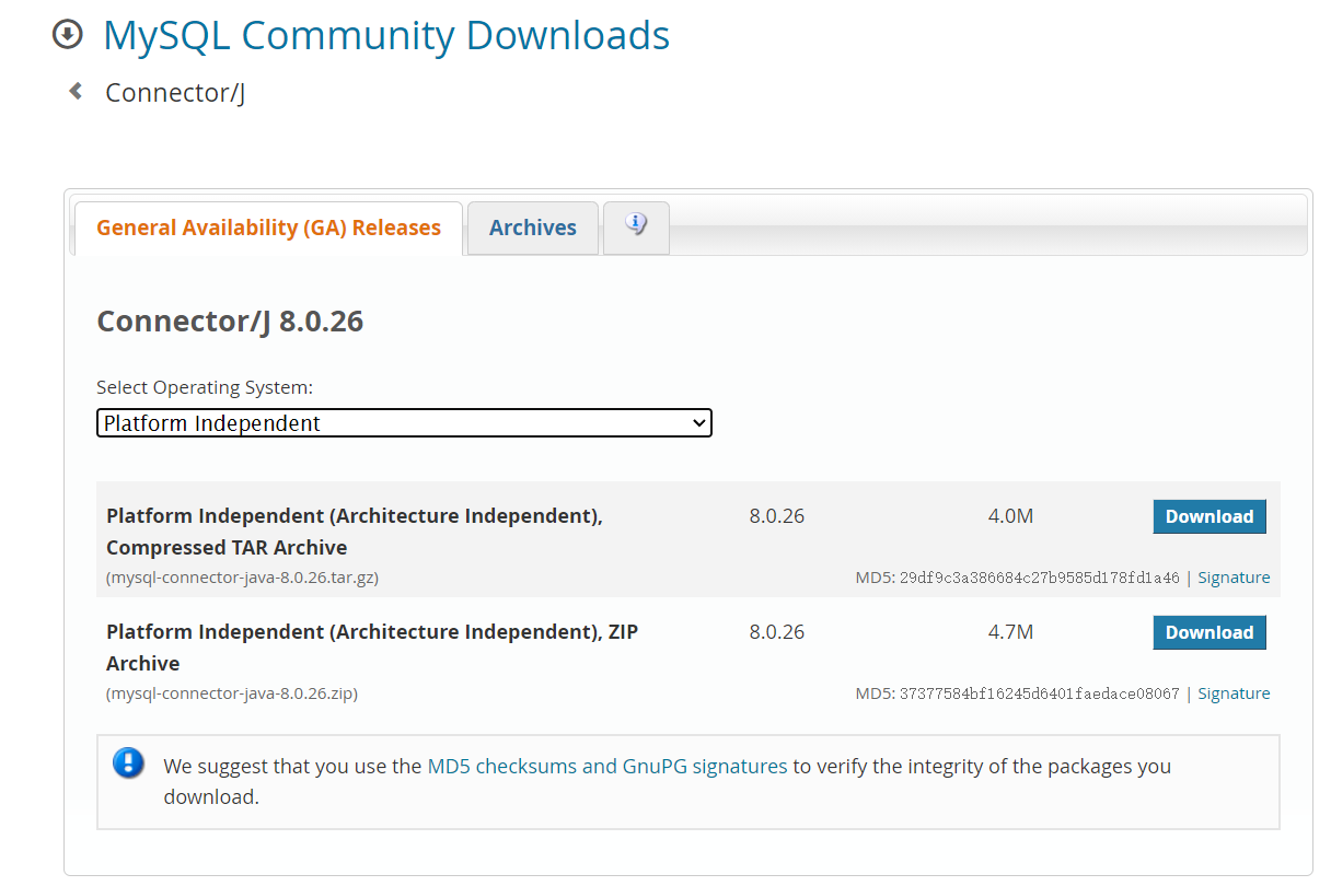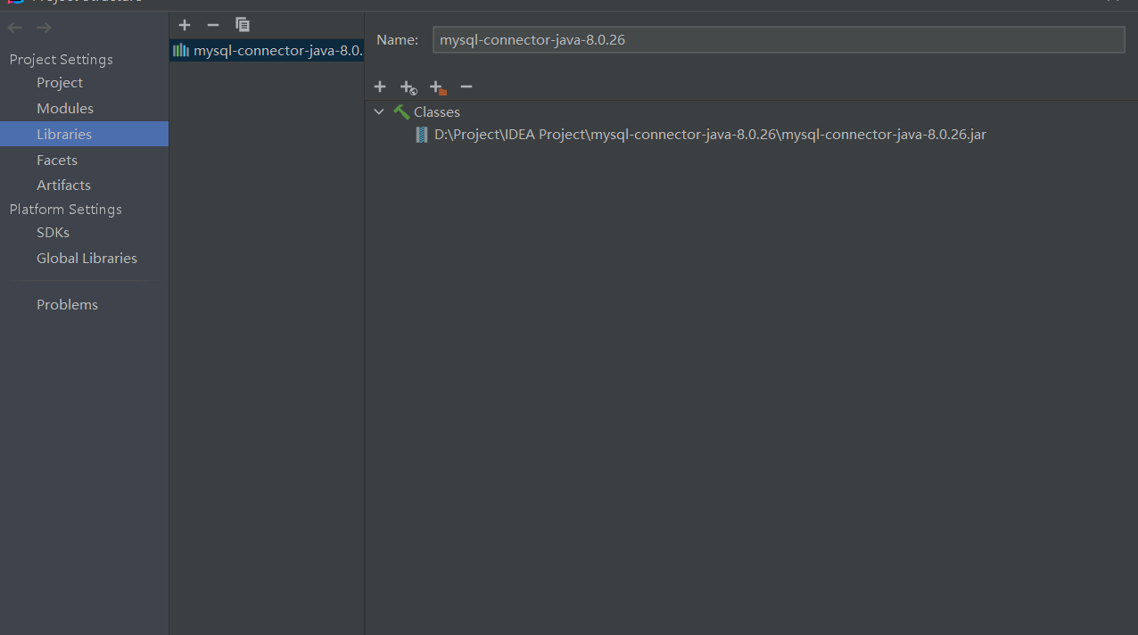 数据表创建完成 3.JDBC程序运行 下载jdbc驱动 地址:jdbc下载  选择图中下载选项,linux选择tar,windows选择zip进行下载 下载好之后直接解压到一个能找到的地方 打开idea,新建一个java项目  然后点击右上角的设置图标选择图中选项,进入以下界面  在liararies选项中点击左上的加号,引入jdbc驱动 新建java文件,代码如下: