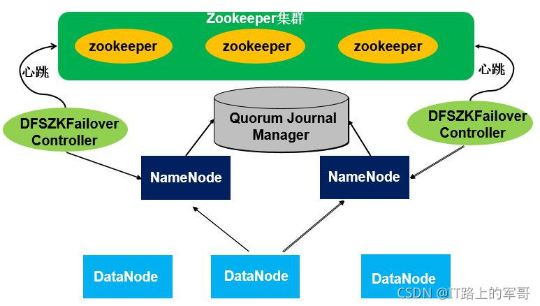 ????????Zookeeper是一个分布式协调服务,Zookeeper即可用来保证Hadoop集群的高可用性。通过zookeeper集群与Hadoop2.X中的两个NameNode节点之间的通信,保证集群中总有一个可用的NameNode(即active NameNode),从而实现双NameNode节点构成的NameNode HA,达到HDFS高可用性。同Zookeeper也可用来保证ResourceManager HA,即实现YARN高可用性。