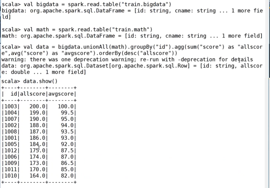 任务实现:读取Hive中的学生成绩表bigdata和math,查看学生信息