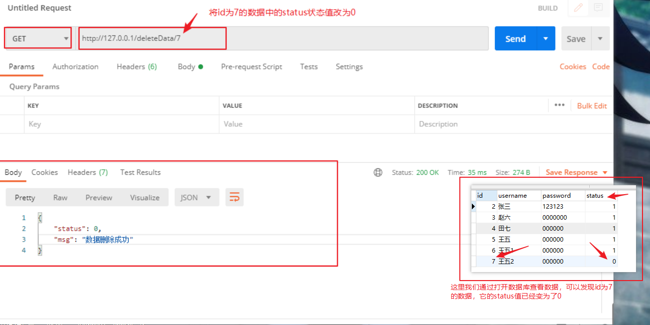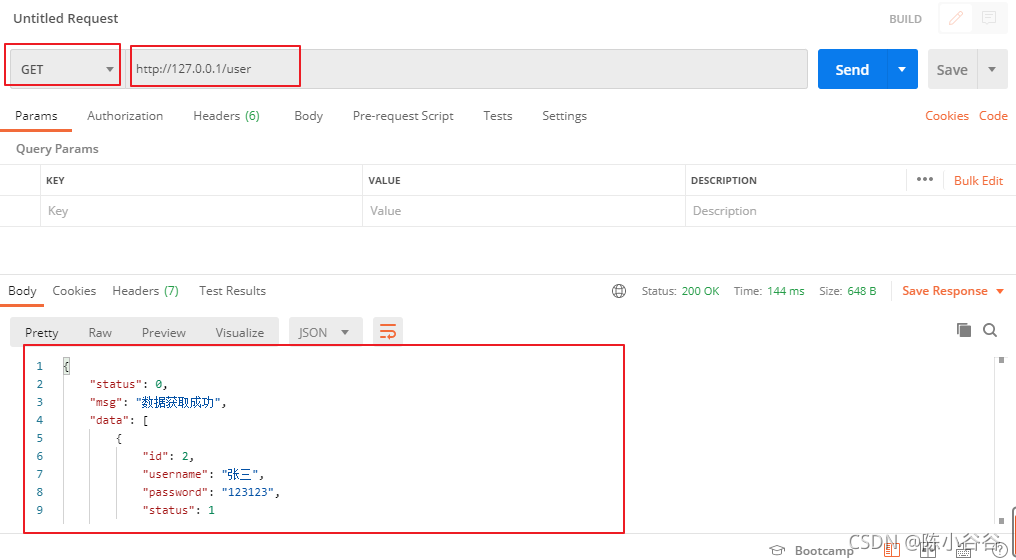 ?打开Postmon 发送get请求,输入http://127.0.0.1/user来验证是否在客户端成功打印了数据,打印成功显示如下页面: