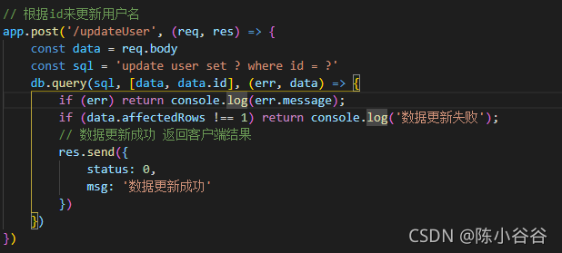 if (data.affectedRows !== 1) return console.log('数据更新失败');