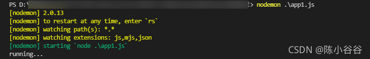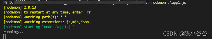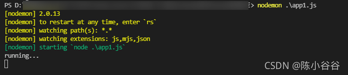 打开当前文件下的终端--输入命令 -- nodemon 文件名.js???????