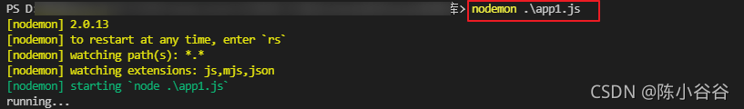 打开当前文件下的终端--输入命令 -- nodemon 文件名.js