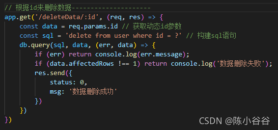 const sql = 'delete from user where id = ?' // 构建sql语句