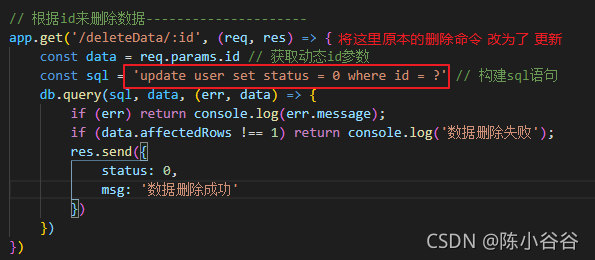 const sql = 'update user set status = 0 where id = ?' // 构建sql语句