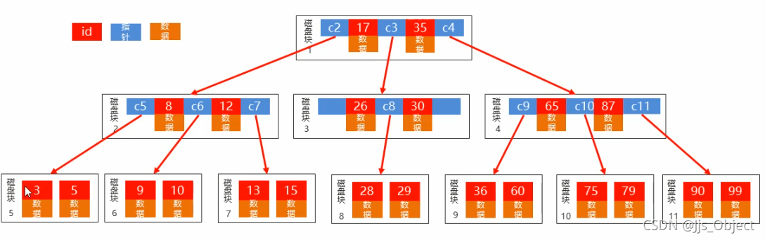 3、b+tree的叶子节点使用指针连接在一起,方便了顺序遍历