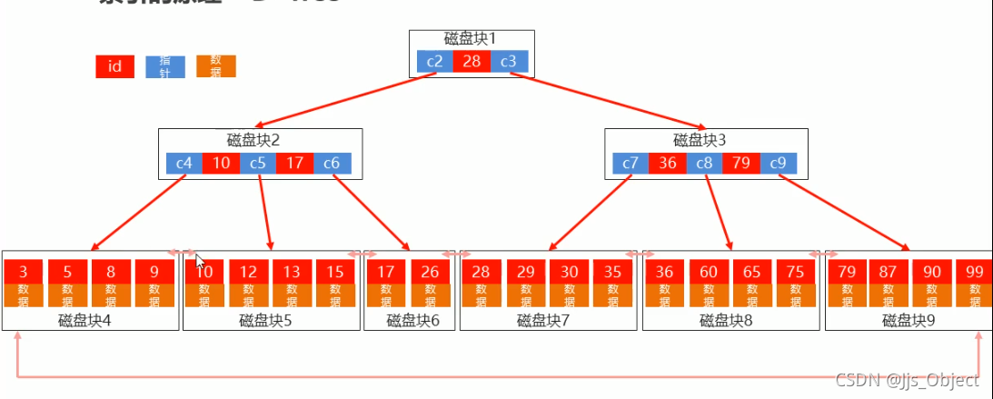 3、b+tree的叶子节点使用指针连接在一起,方便顺序遍历