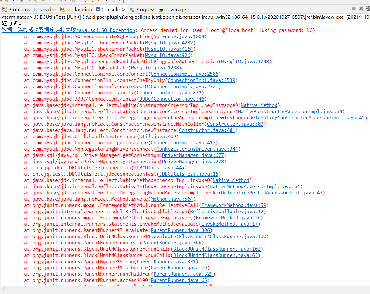 mysql 数据库连接报错误:数据库连接成功数据库连接失败java.sql.SQLException: Access denied for user ‘root’@‘localhost’ (using password: NO),如下图所示: