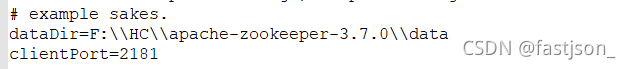 下载完成后解压,然后打开配置拷贝一份zoo_sample.cfg,修改名称为zoo.cfg,打开zoo_.cfg,修改数据保存路径,如下图修改为本地可用路径,没有就创建对应的文件夹目录:
