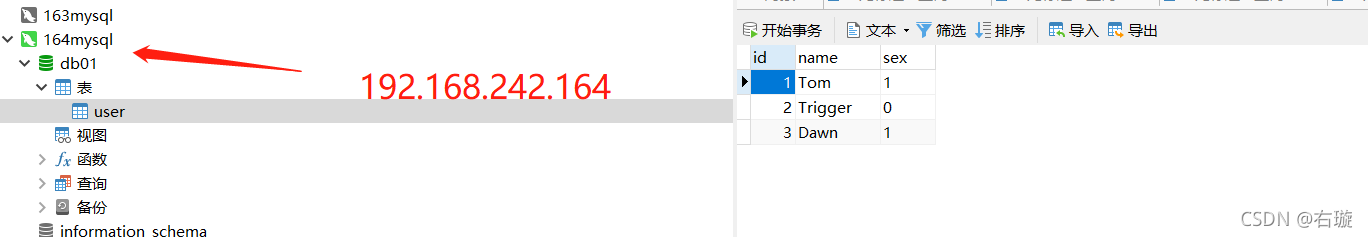 ????????1、主库创建数据库及表数据